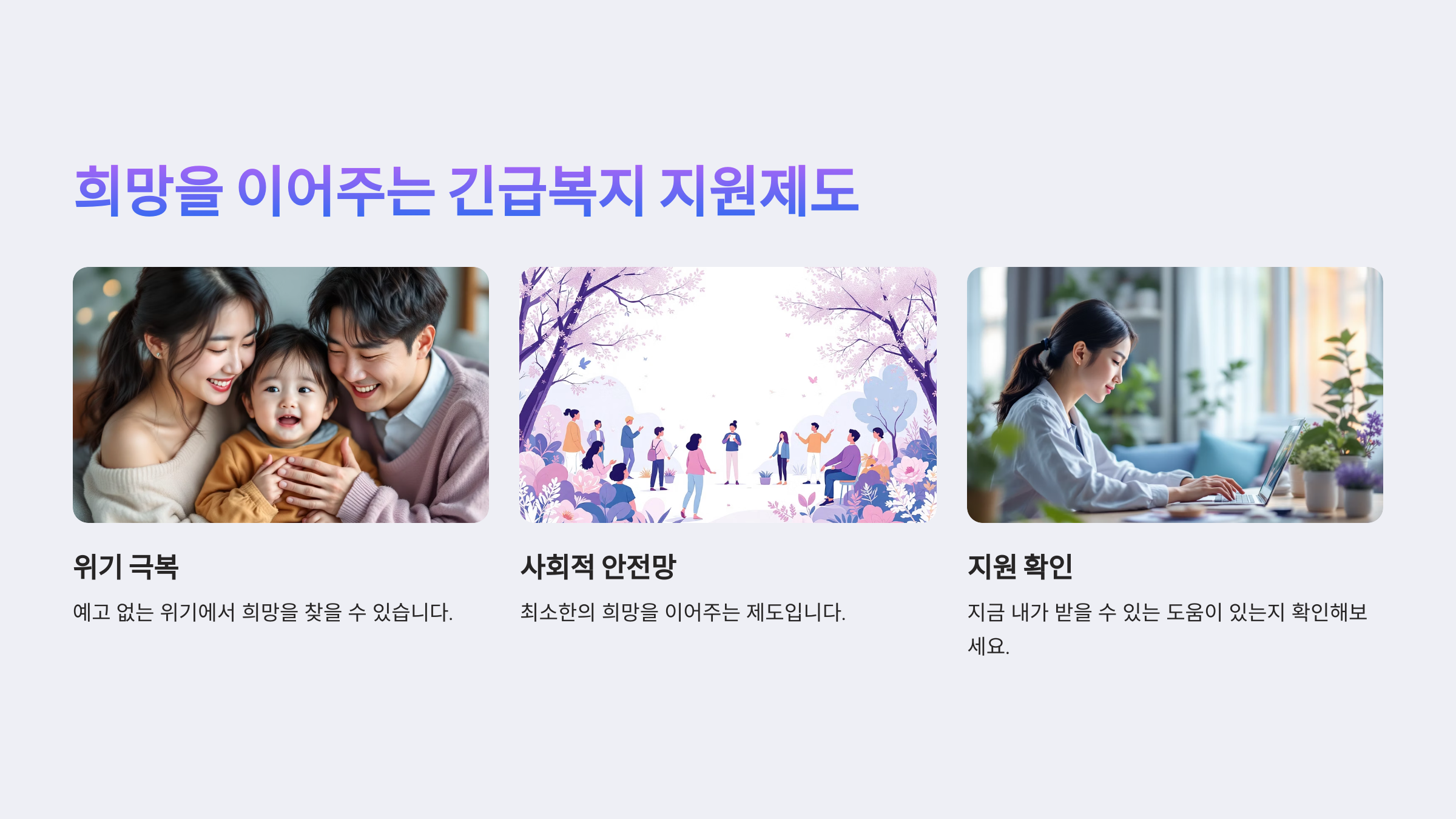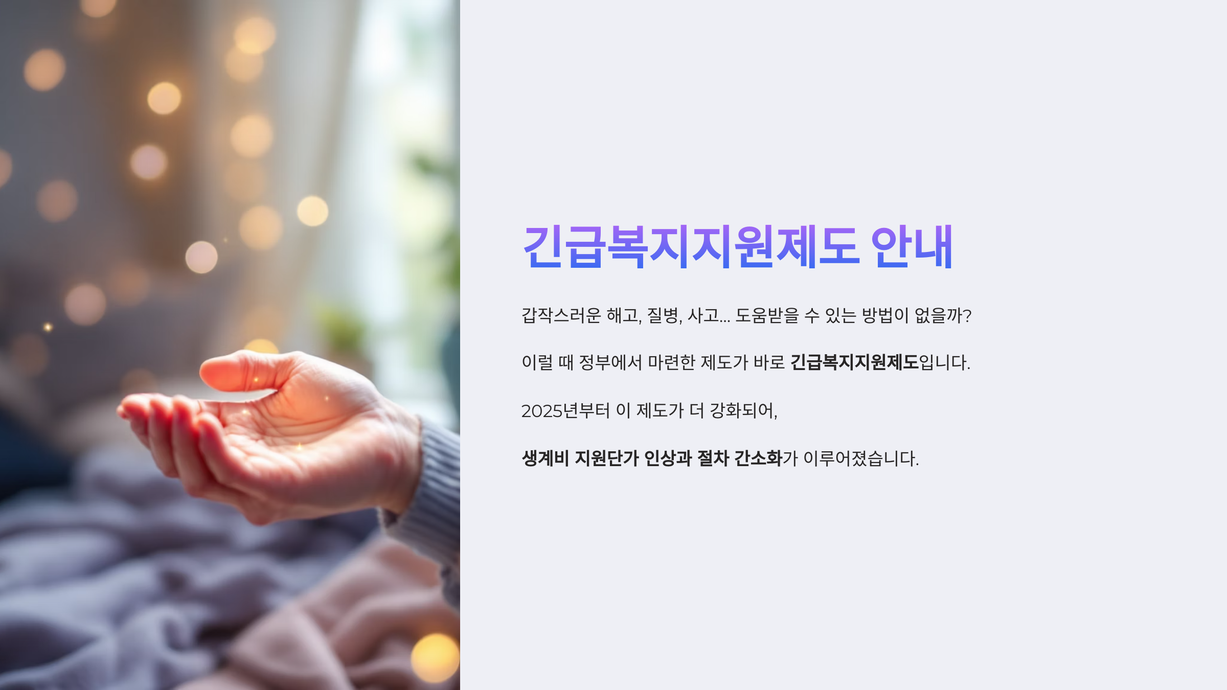긴급복지 지원제도는 그런 상황에서 최소한의 희망을 이어주는 제도입니다.