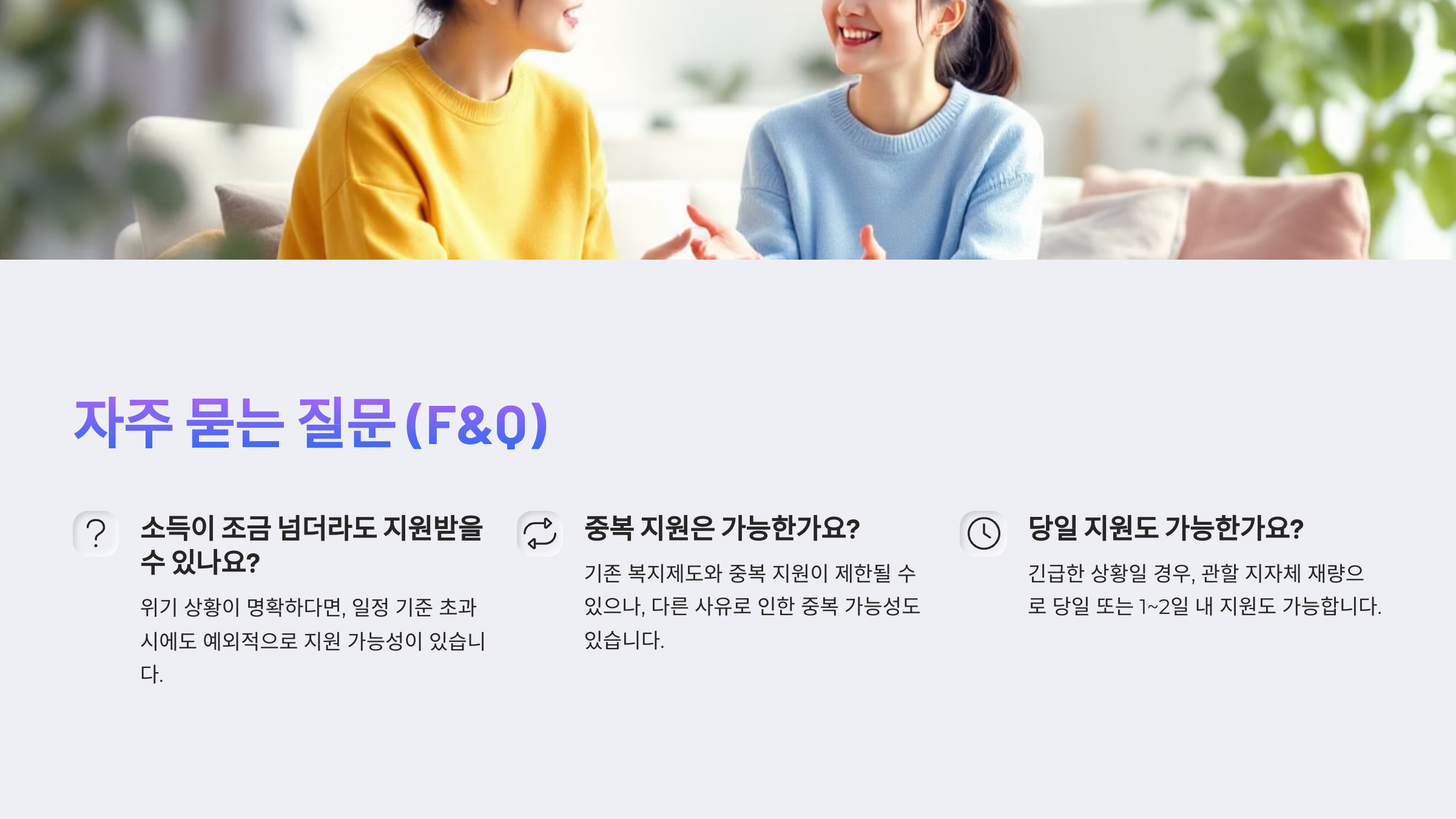 - A. 위기 상황이 명확하다면, 일정 기준 초과 시에도 예외적으로 지원 가능성이 있습니다.