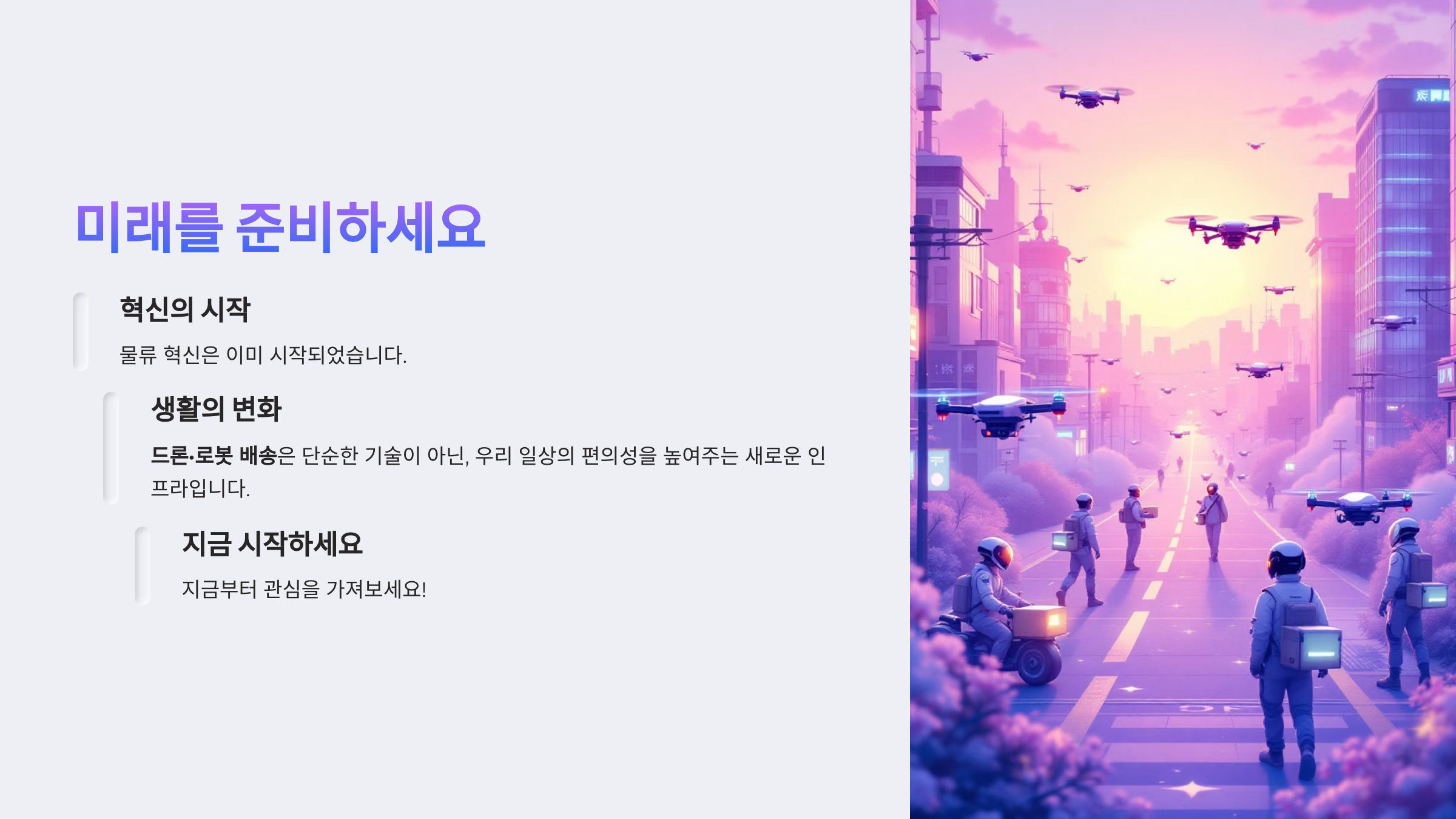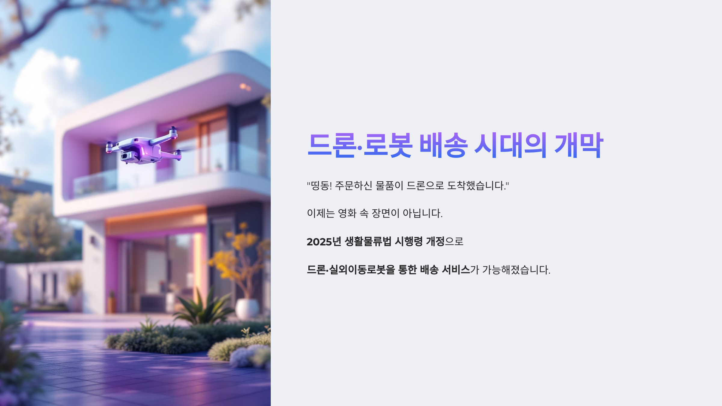 드론·로봇 배송은 단순한 기술이 아닌, 우리 일상의 편의성을 높여주는 새로운 인프라입니다.