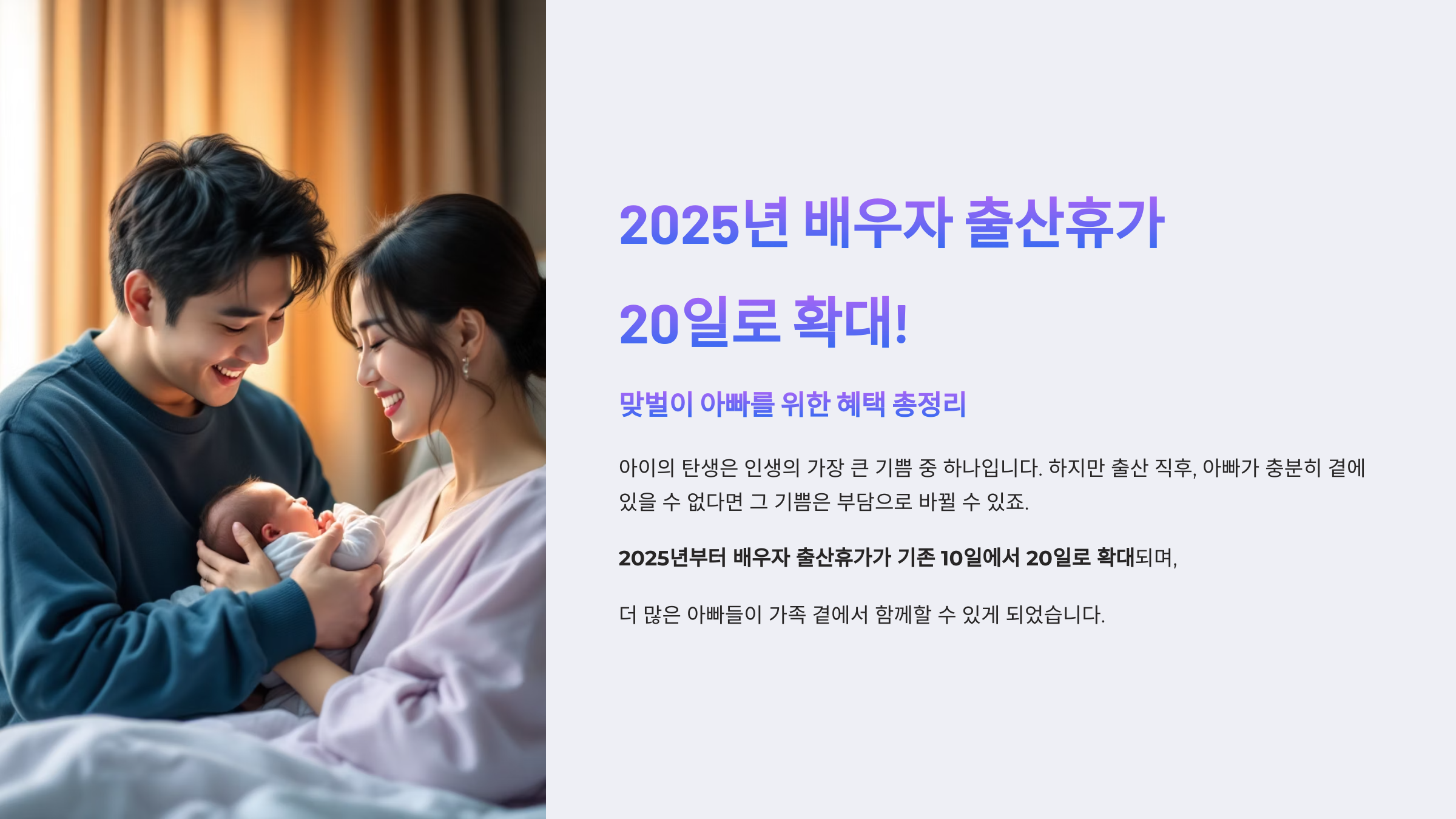 2025년 배우자 출산휴가 20일로 확대!