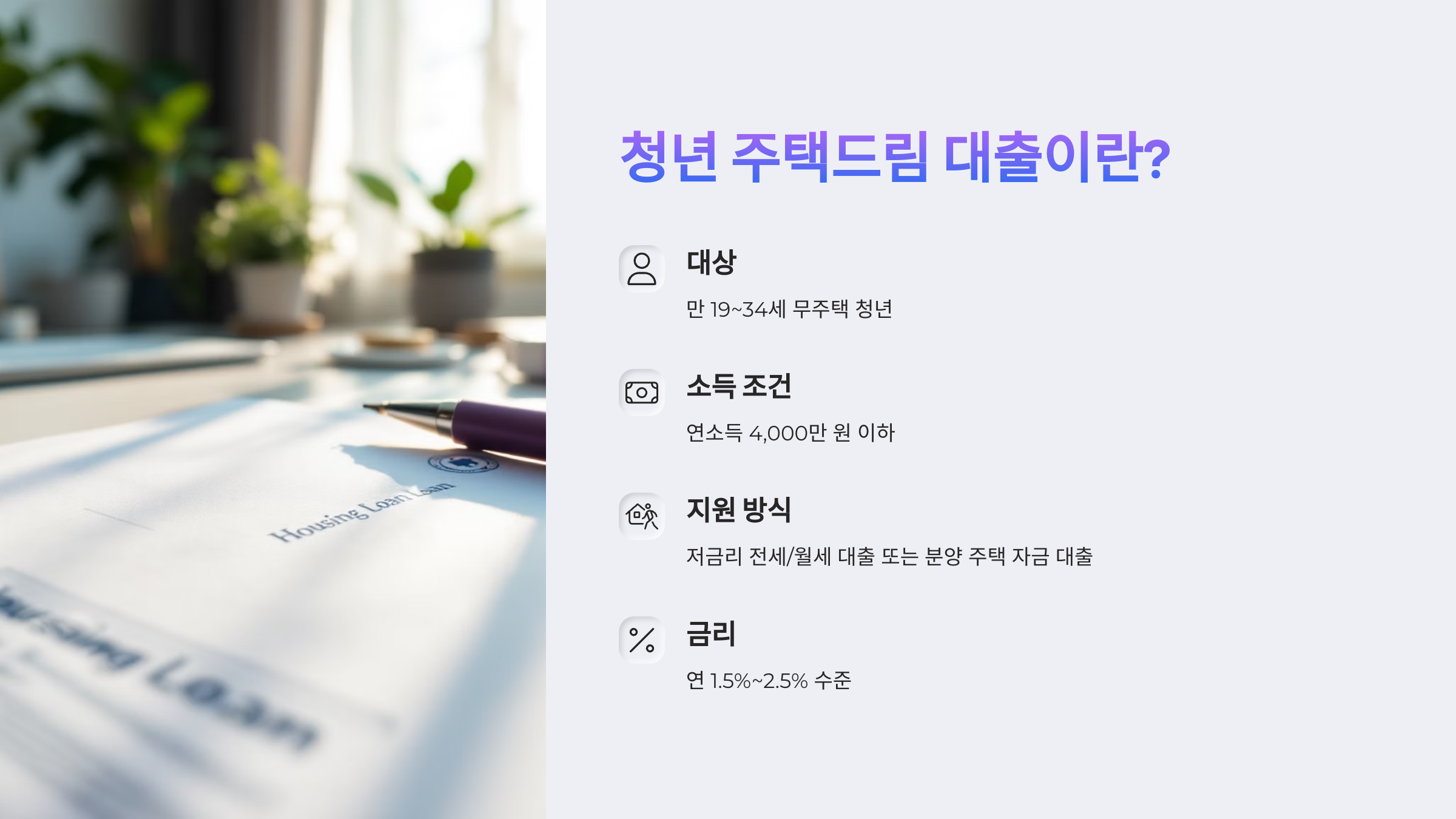 청년 주택드림 대출은 시작일 뿐! 지금 바로 자격을 확인해보세요.
