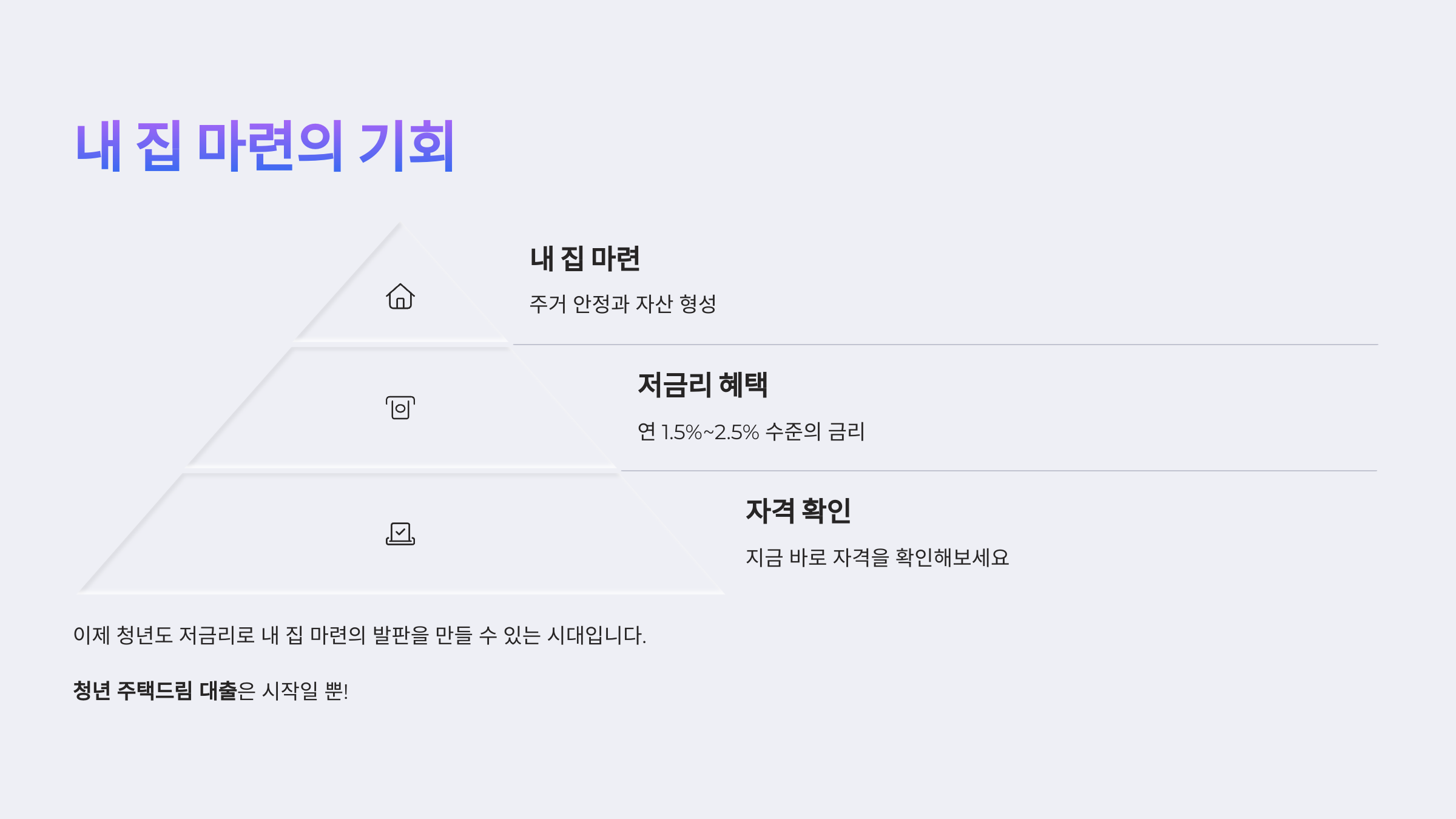 이제 청년도 저금리로 내 집 마련의 발판을 만들 수 있는 시대입니다.