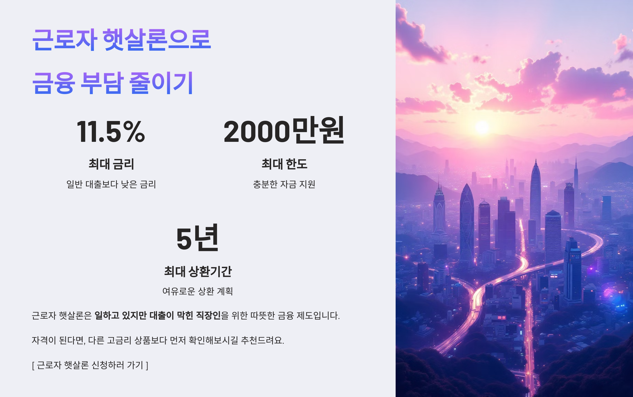 근로자 햇살론은 일하고 있지만 대출이 막힌 직장인을 위한 따뜻한 금융 제도입니다.
